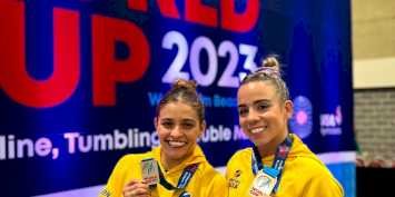 O Brasil chegou ao pódio na etapa de Palm Beach (EUA) da Copa do Mundo de Ginástica de Trampolim. As atletas Alice Gomes e Camilla Lopes conquistaram, no último sábado (5), a pontuação de 48.360 pontos no sincronizado feminino e ficaram com a medalha de prata.