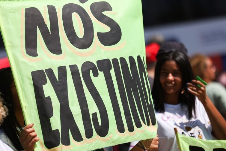 Jovens carregando mudas de árvores nativas, simbolizando o futuro, também percorreram as ruas da Esplanada dos Ministérios.
