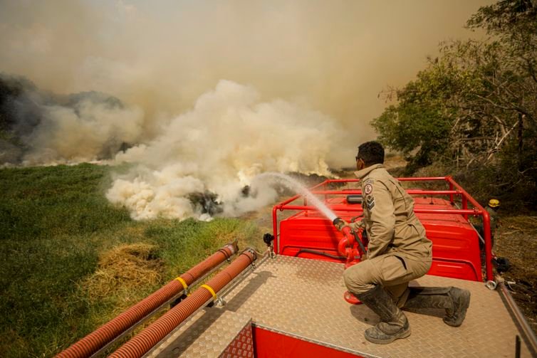 O presidente do Instituto Chico Mendes de Conservação da Biodiversidade (ICMBio), Mauro Pires, está na região de Porto Jofre, no município de Poconé (MT), para ver de perto o trabalho dos brigadistas. O presidente do Instituto Brasileiro do Meio Ambiente e dos Recursos Naturais Renováveis (Ibama), Rodrigo Agostinho, também esteve em Mato Grosso para acompanhar o combate aos incêndios florestais que atingem o Pantanal.