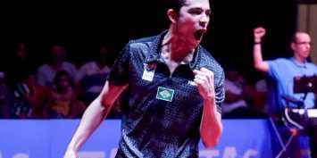 No entanto, a partir daí o brasileiro se encontrou, vencendo o terceiro set por 11/8, o quarto por 11/0 e o quinto por 11/4. Pitchford recobrou um pouco do fôlego na sexta parcial, que terminou com vitória dele por 12/10 mas Calderano foi mais incisivo no último e decisivo set, vencendo por 11/7.