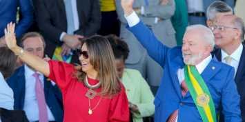 Antes de embarcar, o presidente Lula, ao lado de ministros e autoridades dos demais Poderes, participou do desfile de 7 de Setembro, realizado na Esplanada dos Ministérios