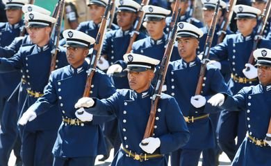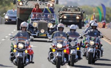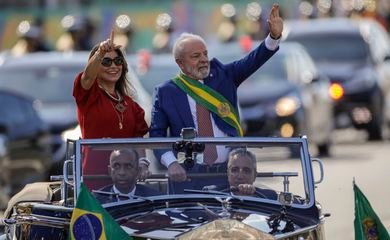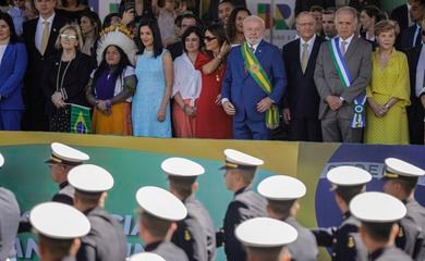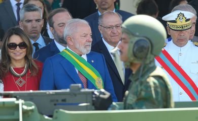 No anexo do Palácio do Planalto, o presidente Lula passou em revista a tropa e, na sequência, seguiu no Rolls-Royce presidencial, acompanhado da primeira-dama, a socióloga Rosângela da Silva, a Janja, até a tribuna de honra montada entre os prédios dos ministérios da Defesa e de Minas e Energia e Turismo, onde havia cerca de 200 convidados.