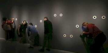 Mas a exposição tem início antes dessa sala. Já ao entrar no elevador, o público vai ouvir uma intervenção sonora, também criada por Alê Siqueira, e que reúne cantos famosos como Ôôôôô, Ilariê, Aê-aê-aê, que se unem para formar uma única canção.