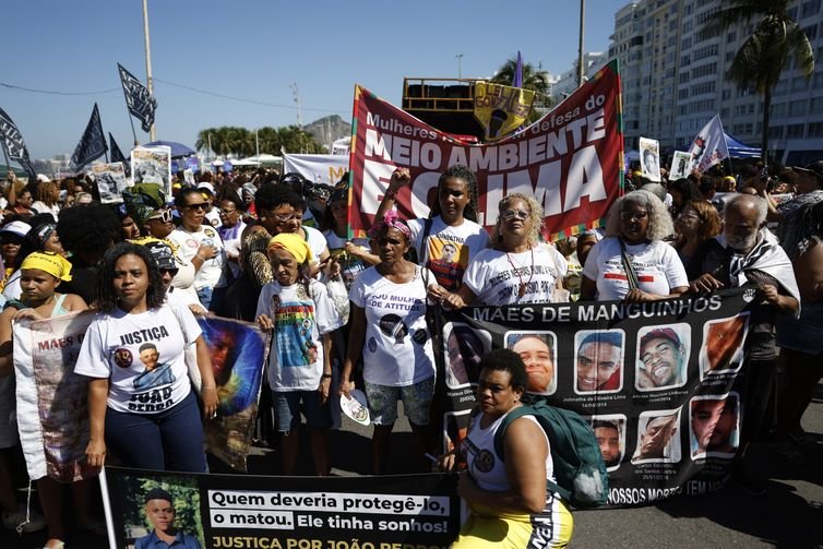 Logo em seguida, as mães que tiveram filhos mortos por agentes do Estado pediam Justiça. Uma delas era Rafaela Mattos, mãe do adolescente João Pedro Mattos, morto em 2020, durante uma operação policial.