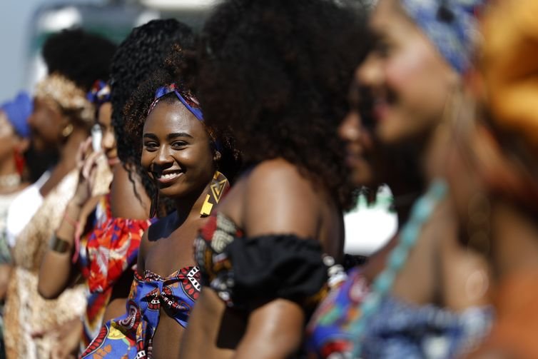 Nesta edição, a faixa à frente da marcha foi carregada por meninas e jovens negras, representando a continuidade e o futuro do movimento.