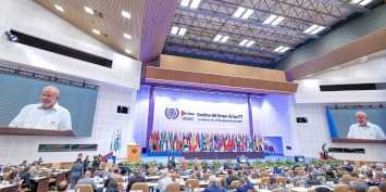 “Reconhecemos que todas as barreiras tecnológicas, nomeadamente as relatadas pelo IPCC [Painel Intergovernamental de Mudanças Climáticas], limitam a adaptação às alterações climáticas e a implementação das Contribuições Nacionais Determinadas (NDC) dos países em desenvolvimento. Reiteramos, a este respeito, a necessidade de uma resposta eficaz à ameaça urgente das alterações climáticas, especialmente através do aumento da prestação de financiamento, da transferência de tecnologia e do reforço de capacidades com base nas necessidades e prioridades dos países em desenvolvimento, de acordo com os princípios e o objetivo da Convenção-Quadro das Nações Unidas sobre Alterações Climáticas e do seu Acordo de Paris, incluindo a equidade e as responsabilidades comuns mas diferenciadas e respectivas capacidades, bem como com base na melhor ciência disponível.”