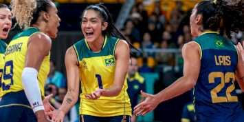A seleção feminina de vôlei faz grande partida e vence as hermanas nos Jogos Pan-Americanos.