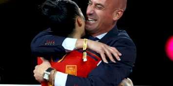 No pódio, Rubiales cumprimentou todas as jogadoras espanholas, mas a aproximação com Hermoso foi diferente. A camisa 10 da seleção desperdiçara um pênalti durante a final. Em vez de beijá-la no rosto, o presidente beijou a jogadora na boca.