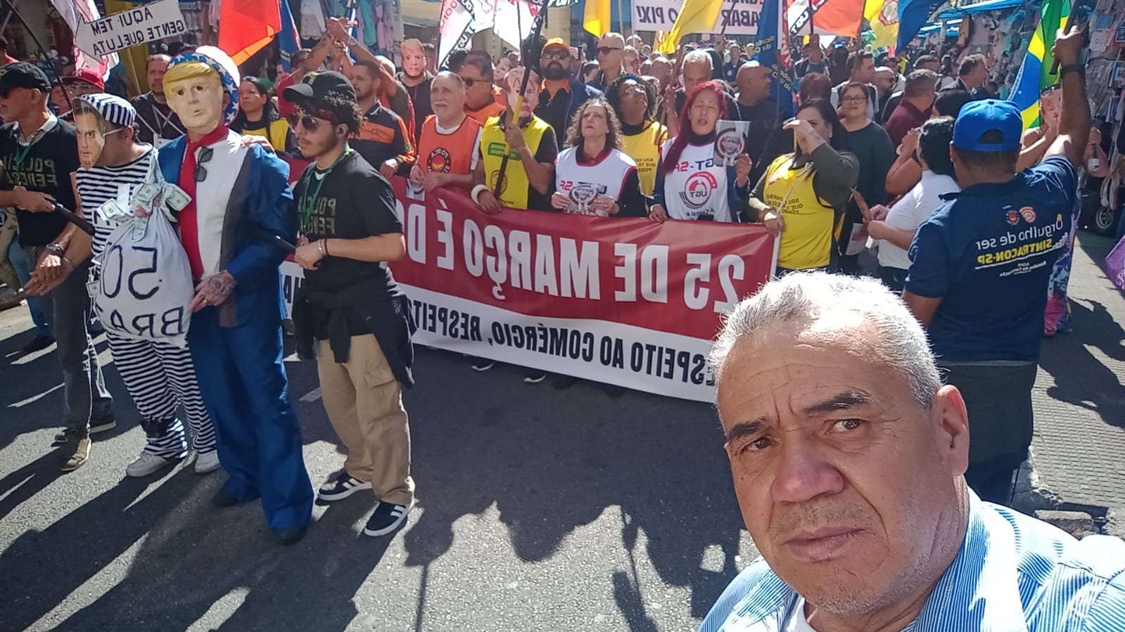 Na manhã de hoje, centrais sindicais e diversos sindicatos se reuniram em um grande ato na região da 25 de Março, em São Paulo, para protestar contra a investigação anunciada pelo ex-presidente americano Donald Trump sobre o comércio popular brasileiro.🚫 O ato foi um forte posicionamento contra interferências estrangeiras, contra a injusta taxa de 50%, e a favor da soberania nacional, do emprego e do direito do povo ao PIX.📢 Em seu discurso, o presidente da UGT, Ricardo Patah, e outros líderes sindicais defenderam com firmeza a liberdade comercial e a proteção dos trabalhadores, denunciando o ataque à autonomia do nosso país.✍️ Presença marcante da diretoria do Sindicato de Cargas Próprias, representada por: