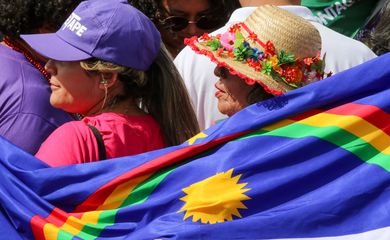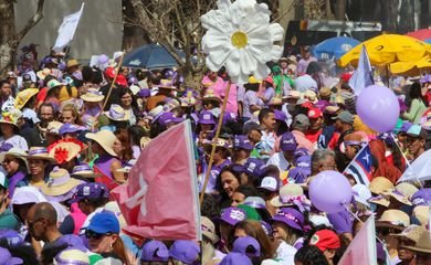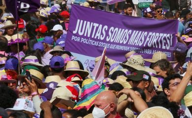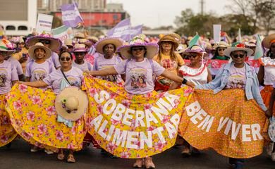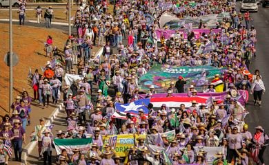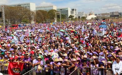 Mais de 100 mil mulheres reunidas em Brasília marcharam, nesta quarta-feira (16), até a Esplanada dos Ministérios, pela reconstrução do Brasil e pelo bem-viver.